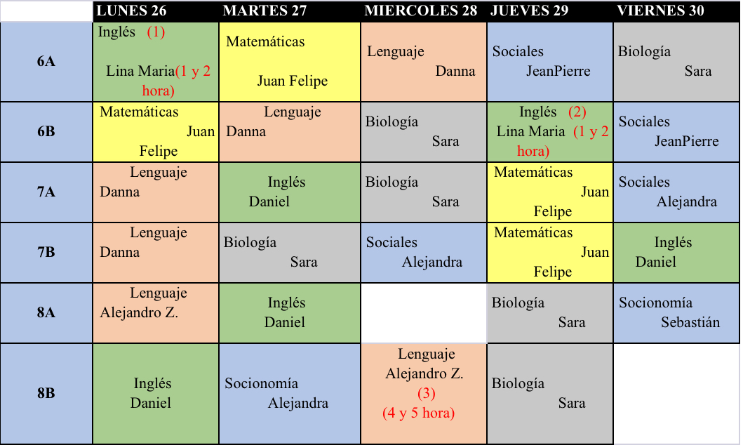 Estudiantes, comparto el horario de bimestrales para el tercer periodo.