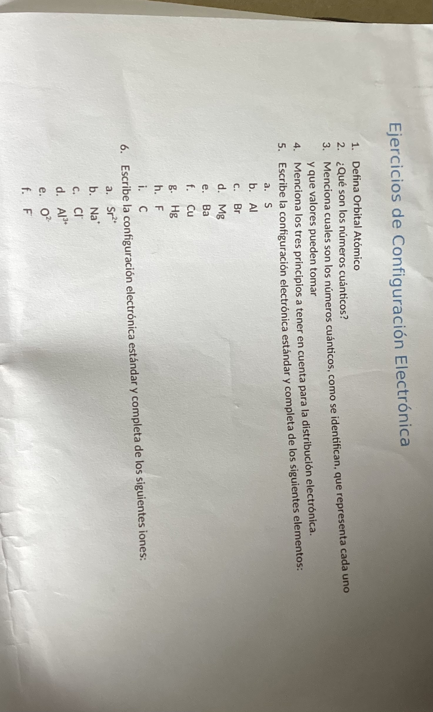 Buenos días envío taller de distribución electrónica y a cada uno de los elementos que encuentras en los puntos 5 y 6 debes de realizar los números cuánticos y el diagrama de distribución.