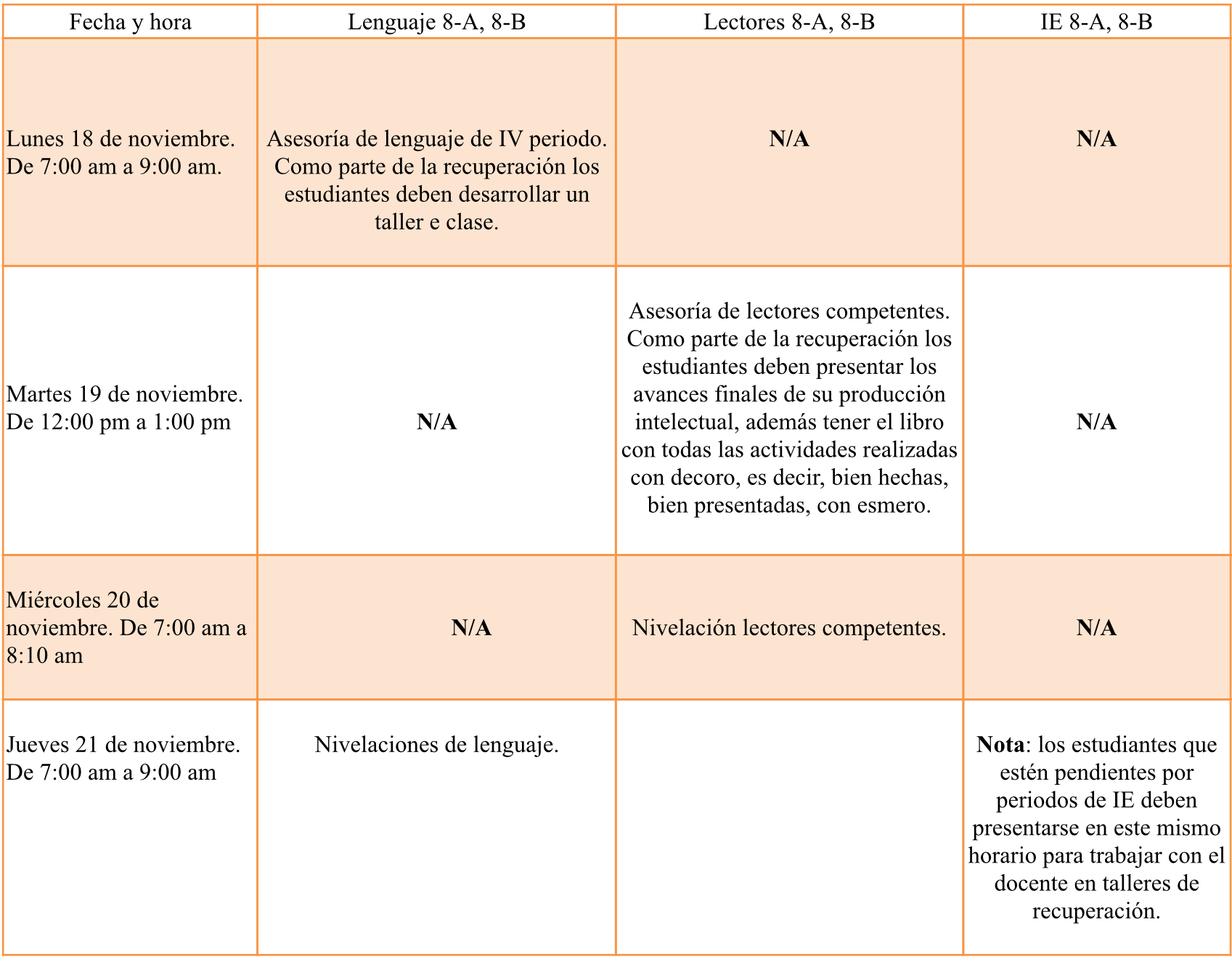 Horario asesoría y nivelaciones (Lenguaje, lectores, IE)