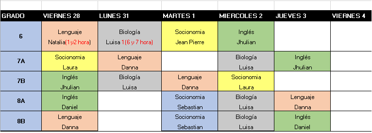 Buenos días, les comparto el horario de los bimestrales del Bimestre 1.