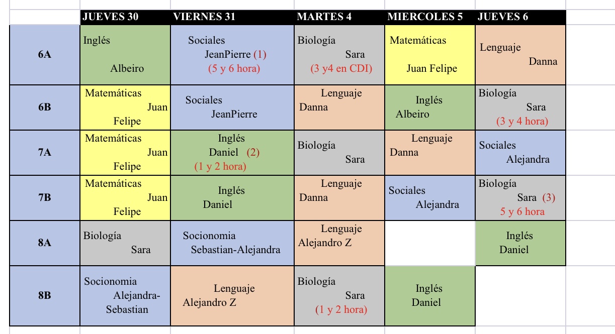 Buen día padres de familia y estudiantes. Adjunto el horario de bimestrales
